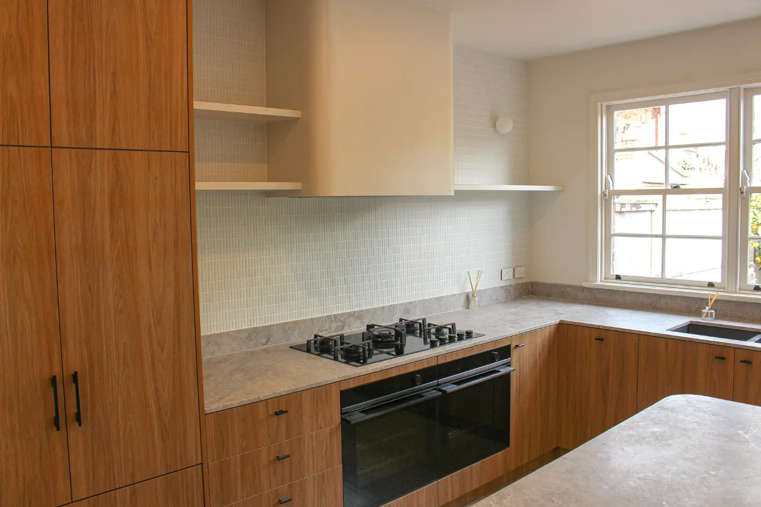 These enhancements include a beautiful terrazzo tile floor and a chic kit kat splashback, which elevate the space to new heights of