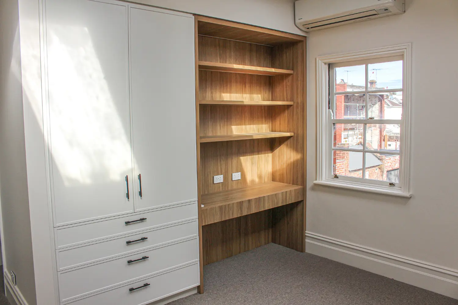 The bedroom renovation was truly remarkable. We meticulously installed a new subfloor, expertly framed & plastered stylish walls, and carefully fitted a specified robe and storage cabinet. All of these elements were designed with a perfect blend of style and functionality. The addition of plush carpeting transformed the space into a cozy and inviting retreat, exuding comfort and warmth.